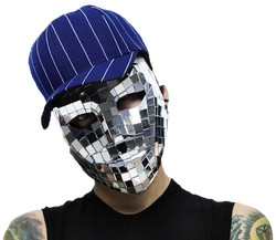 The main mask he primarily uses is the mask from his Let's Get It Crackin' music video, the blue tear-like lines, and pink duct tape have been removed completely, and the entire mask is in the style of a disco ball. It still has visible facial features, however, like the eyebrows and cheeks. It also has a slight smirk that is hard to see.